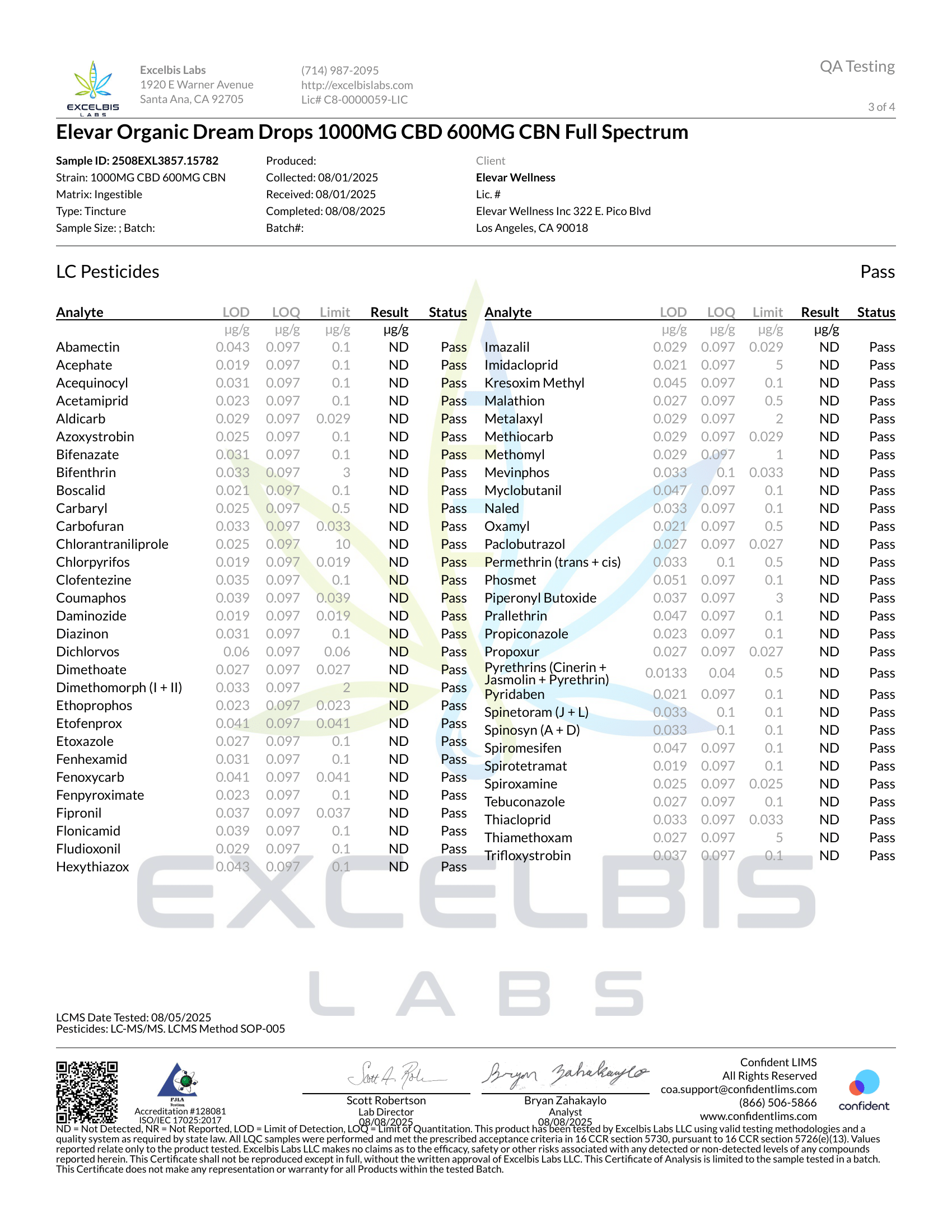 That's why ALL ELEVAR Wellness products undergo SEVEN different categories of 3rd party lab testing to ensure its passing