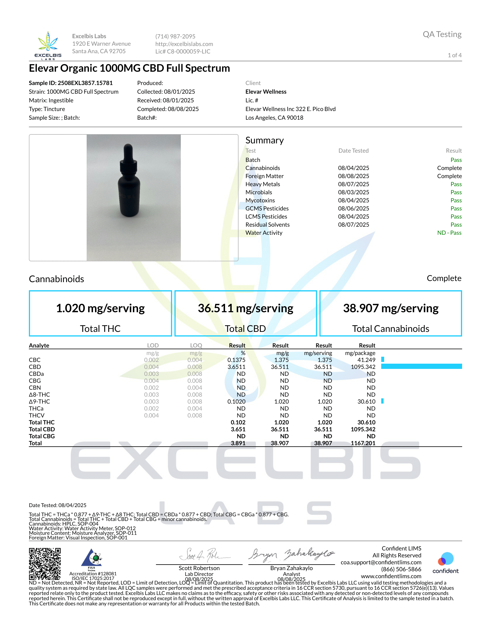 That's why ALL ELEVAR Wellness products undergo SEVEN different categories of 3rd party lab testing to ensure its passing