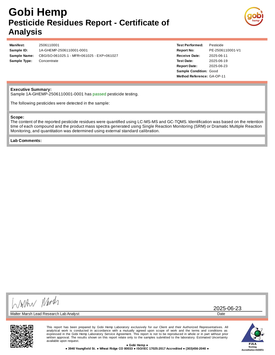 COA LAB TEST BELOW